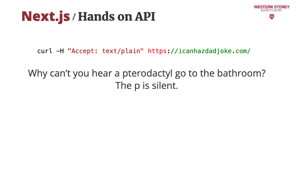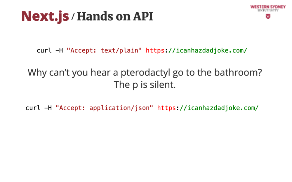 Let’s try a real API! Open your terminal and test the “Dad Joke” API: