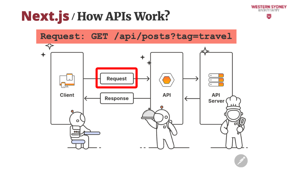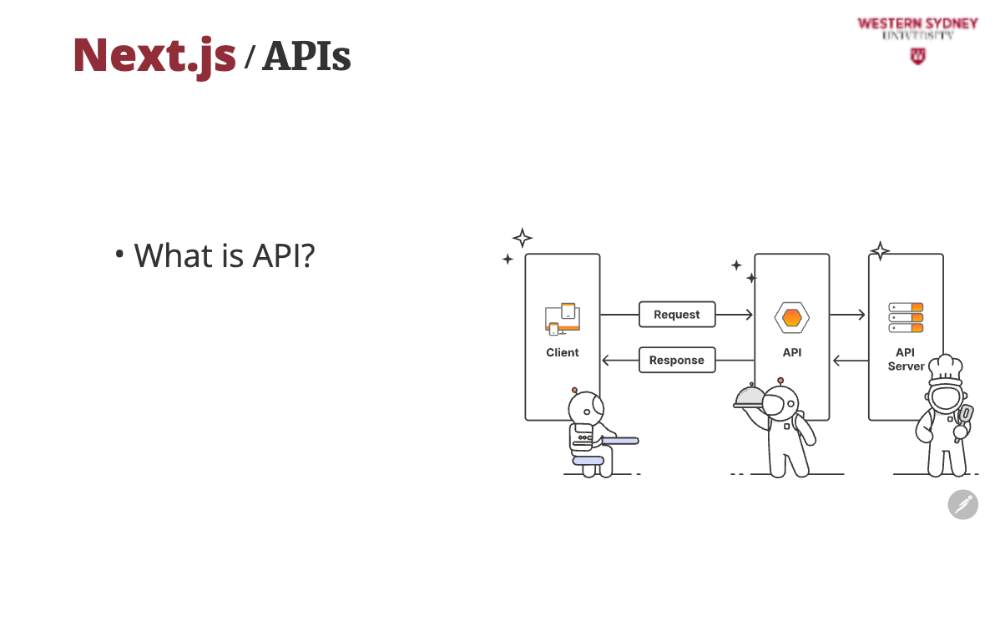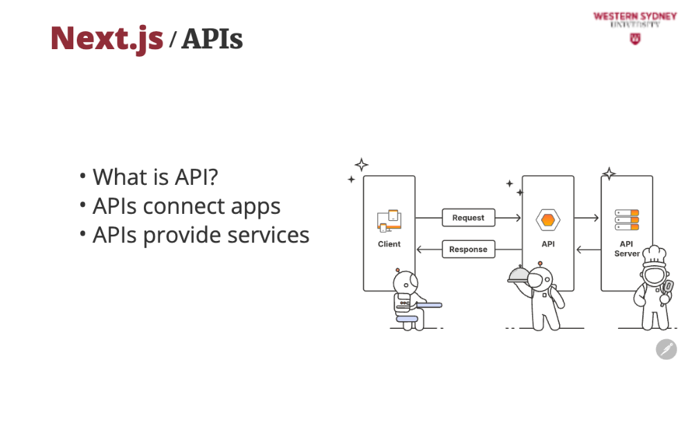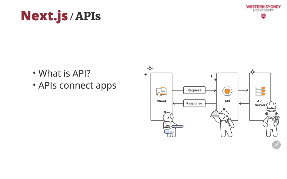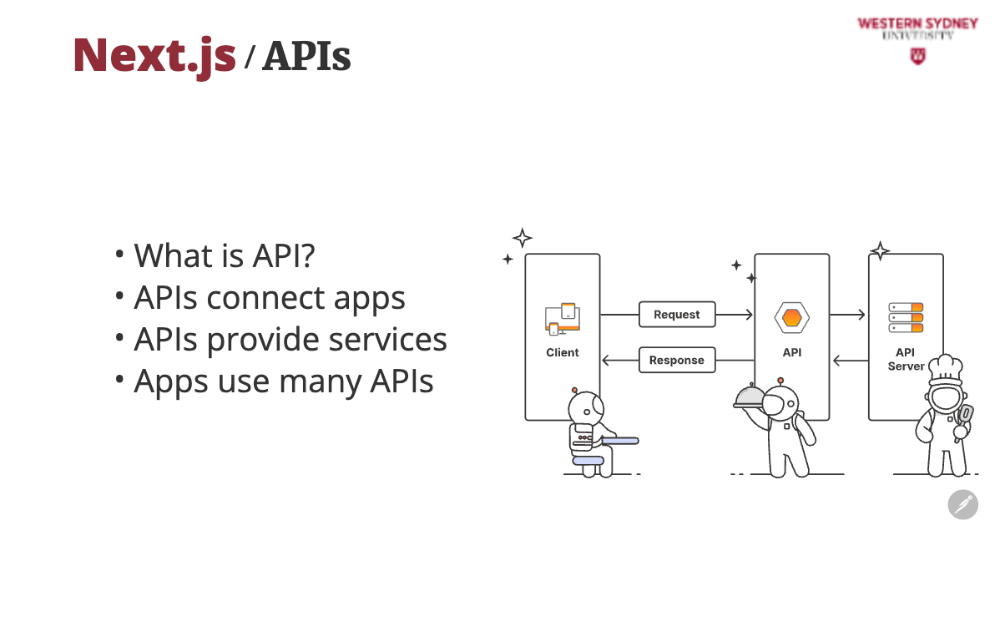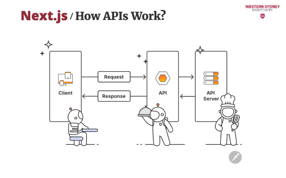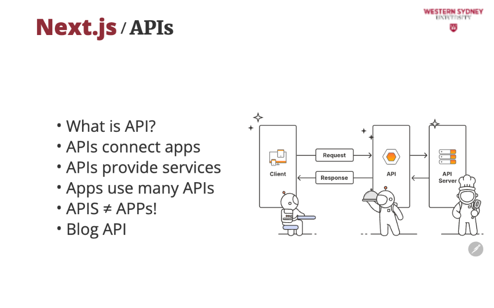 In today’s interconnected world, APIs are everywhere—when you book a flight, check the weather, or even “like” a post on social media. They’re essential to this course because they’re the backbone of modern web development. By the end of this lecture, you’ll see how APIs connect the blogging app’s front end (what you see) to its back end (where the data lives), solving real problems like displaying posts or saving new ones. Let’s dive in with a question: Have you ever thought the “Save” button on an app just magically stores your work? Spoiler: It’s not magic—it’s an API at work!