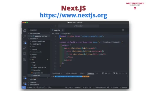 The downloaded project is a NextJS application. Next is a framework for building web application that comes with opinionated project structure supporting routing, client and server rendering and others. We will explore individual features of NextJS in this course in due time.
