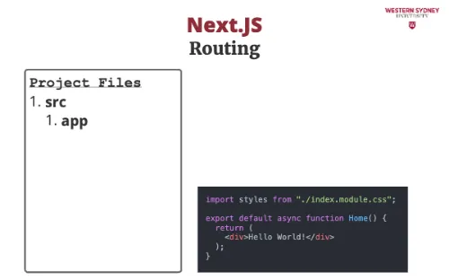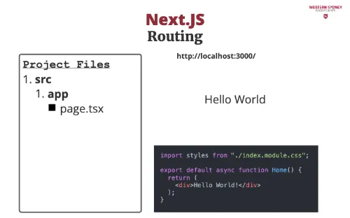 If you run this NextJS application and open it in your browser at http localhost 3000, you will see the Hello World text.