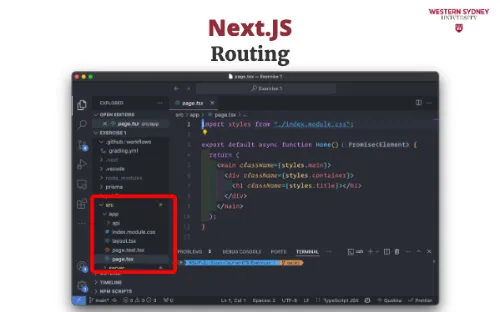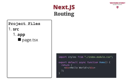 To start, you need to know that NEXT.js uses file system-based routing, where each directory represents one segment of your route. In that directory, you need to have a page.tsx file, which takes care of rendering the web page. The router's root is stored in your project's src/app folder.