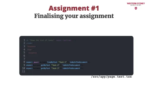 Let's talk about what you need to do to finish your assignment. The best way to find out what is required is to explore the automated tests. In test-driven development, this is how you develop. You first write tests and then the functionality. It is a great practice! Please see the page.test file.