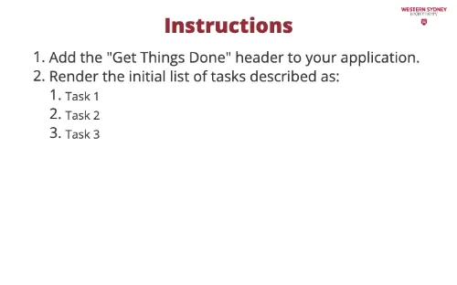 This time, we will hard code the three tasks to the page as a list. Please make the changes and save the file.