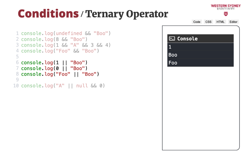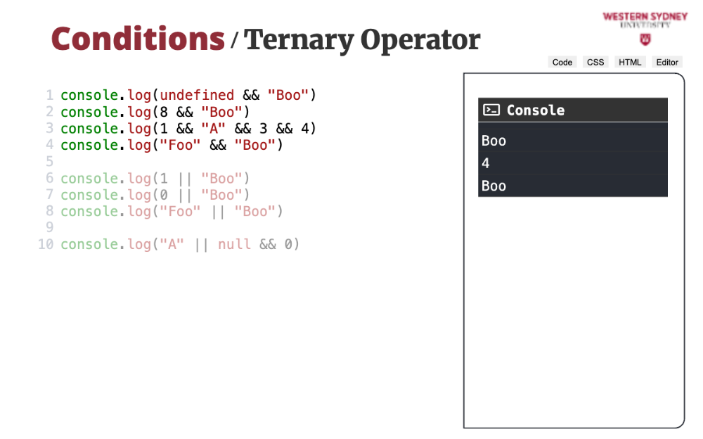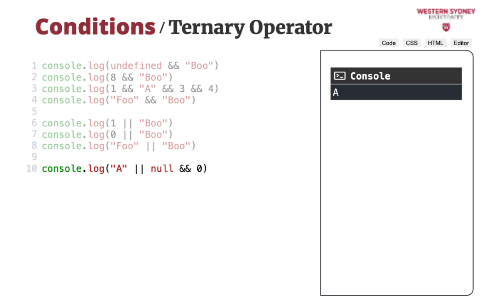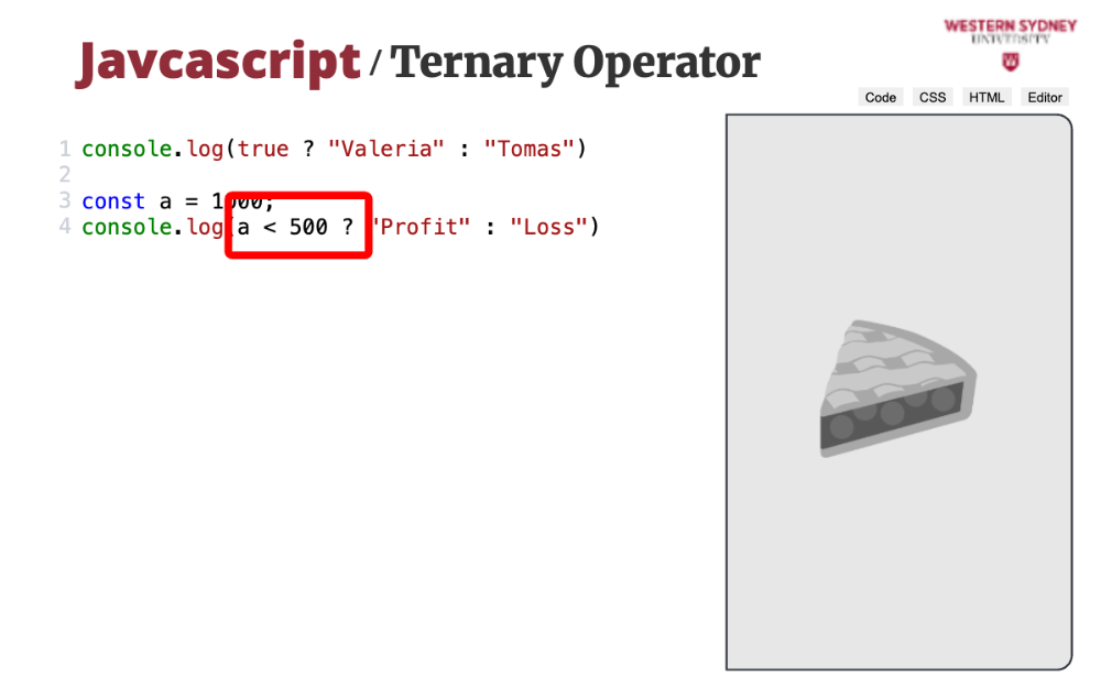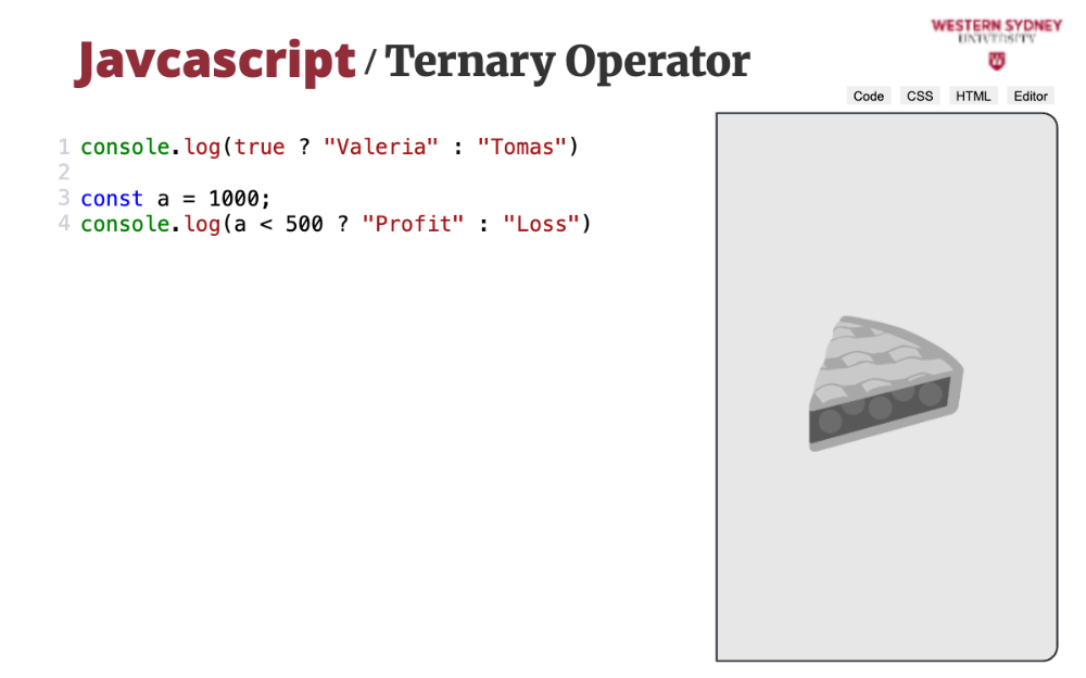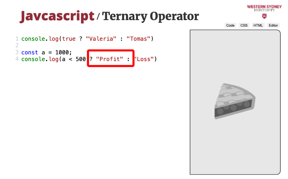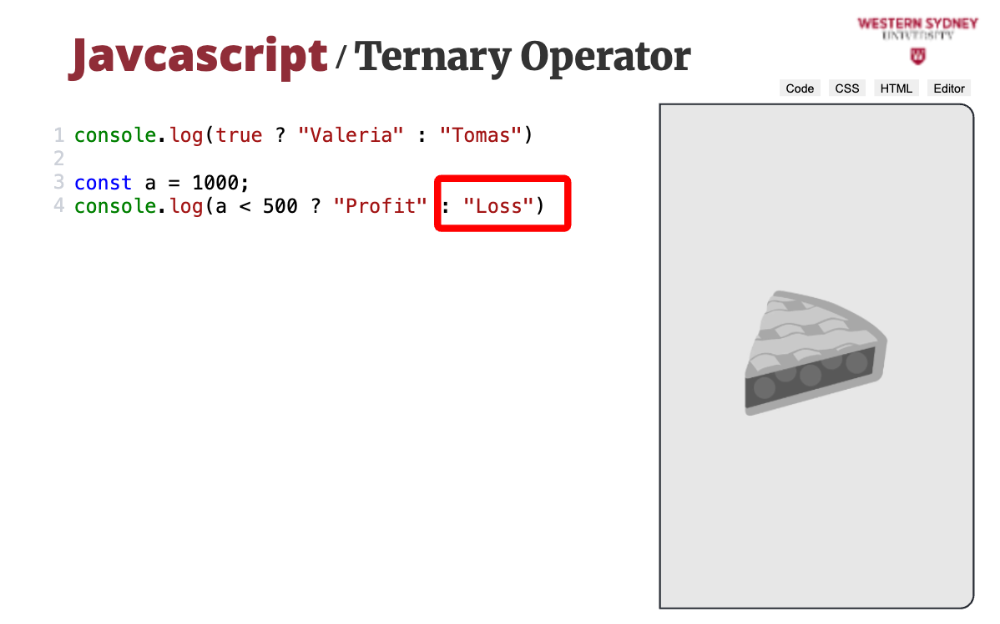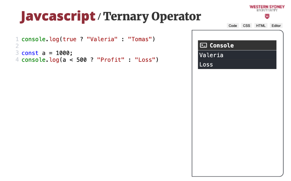 When we execute these examples, the first expression returns "Valeria" as the condition was true. The second condition returns "Loss" as the condition was false.