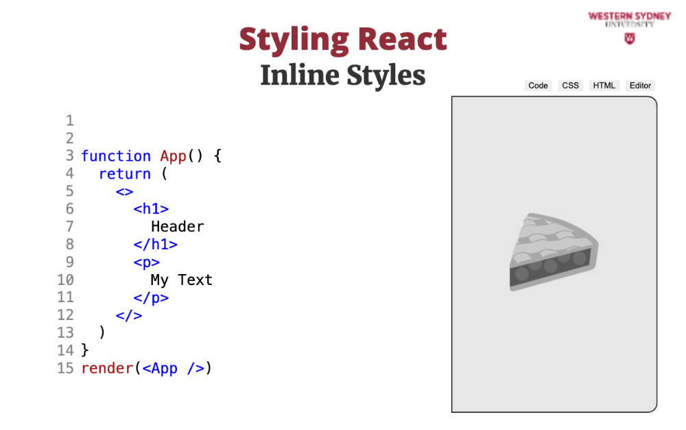 <h1 style={header}>Header 2</h1>The issue with inline styles is that they are limited in their use, as they cannot specify advanced behaviours such as mouse over events, or media queries for responsive styling.