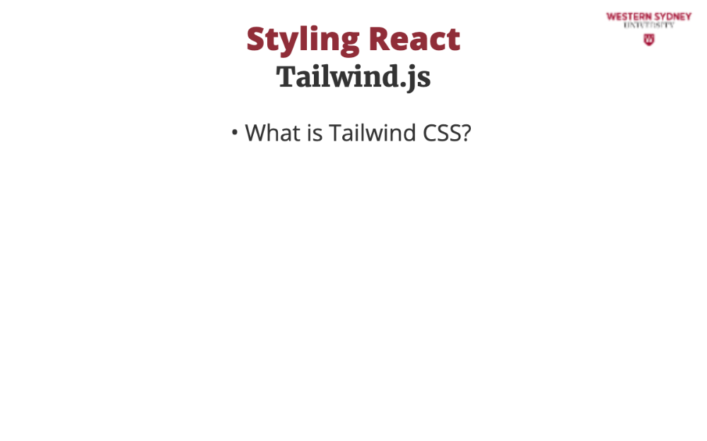Tailwind is a utility-first CSS framework that lets you style components directly in JSX using predefined classes.