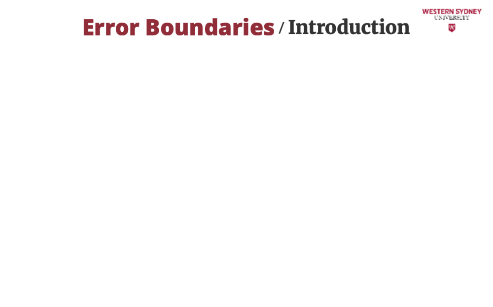 Error Boundaries simulate the try … catch error handling that you know from javascript. But, you are not able to use try … catch in JSX. For example this is impossible: