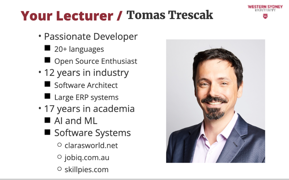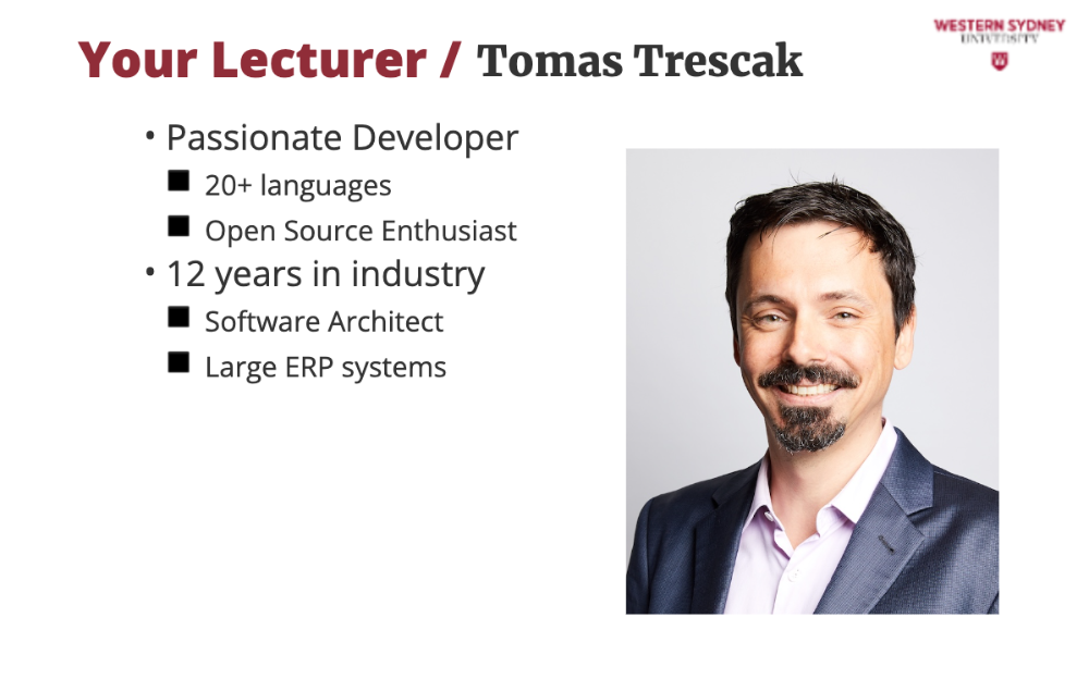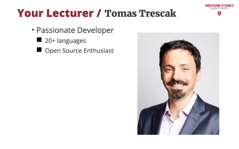 Let's quickly meet the person who developed this course, Associate Professor Tomas Trescak.