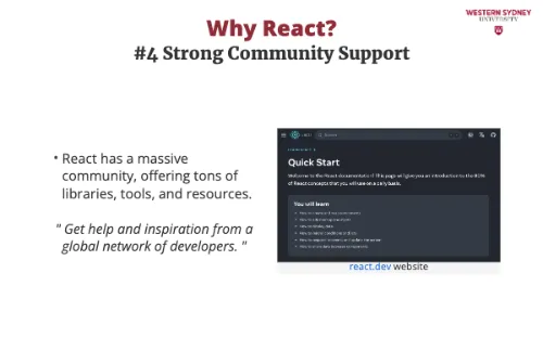 Let's briefly discuss why we chose the ReactJS framework for front-end development during this course.