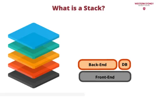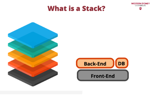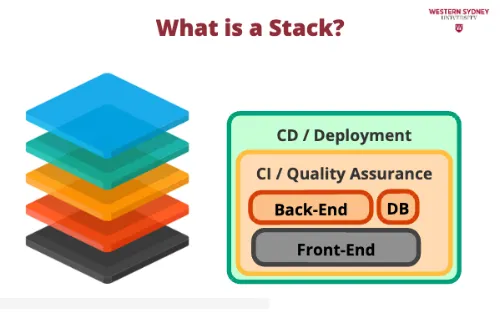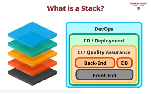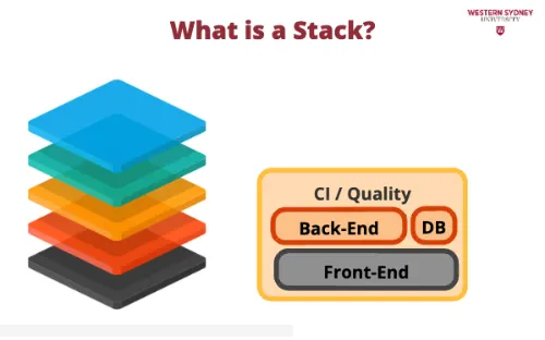 The stack represents the selection of technologies to build, deploy, and maintain all the parts of a software system.