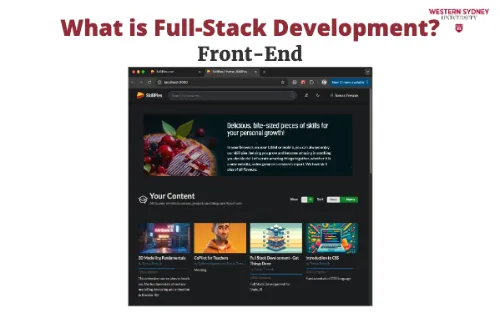 The front-end is like the exterior and interior design—what users see and interact with. It is the visual part of your applications, such as the skillpies website.