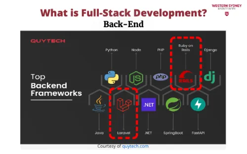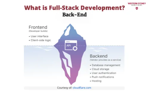 As a full-stack developer, your primary responsibility is to deliver your application's front-end and back-end. The front end is the application user interface, while the back end implements the business logic and data persistence.
