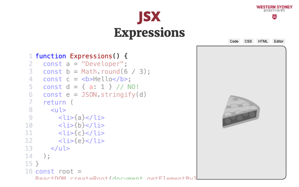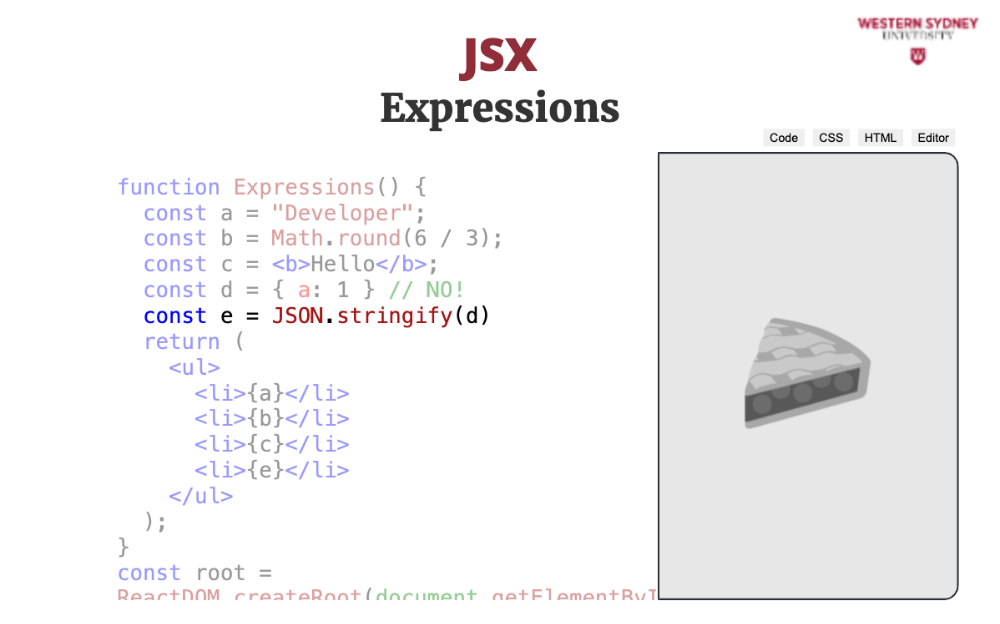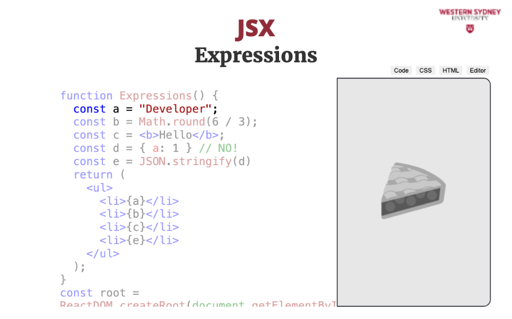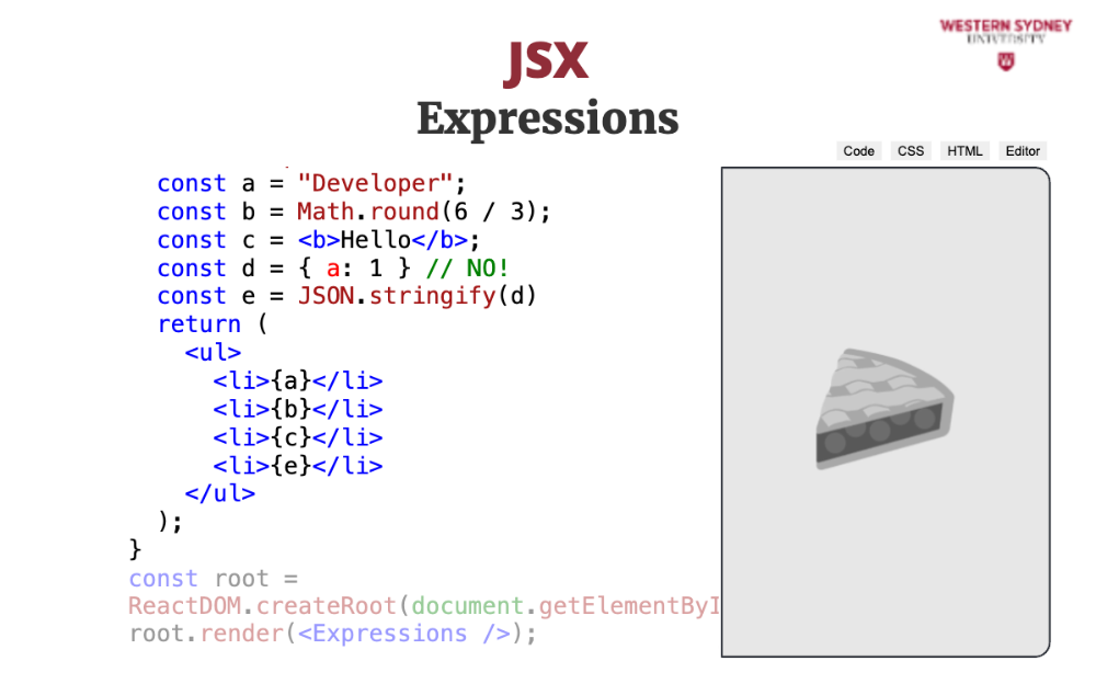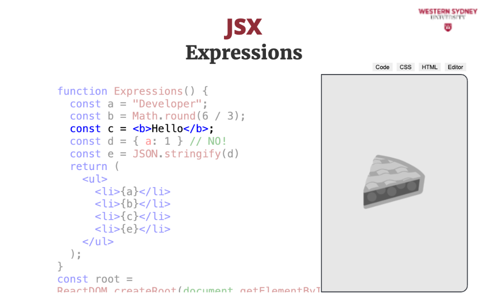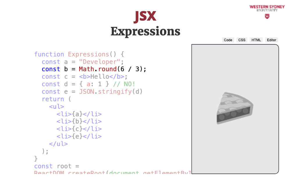 Let's explore the mental model behind JSX. The most important thing to realise is that JSX is not HTML. It is Javascript.