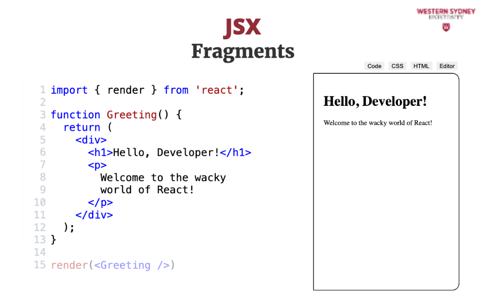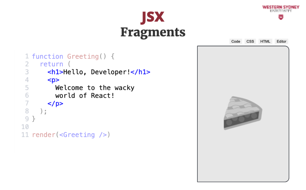 For example, this Greeting component renders the value stored in the jsx variable. Pretty cool huh?