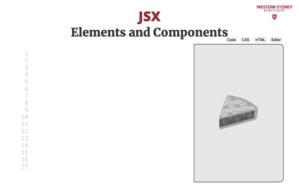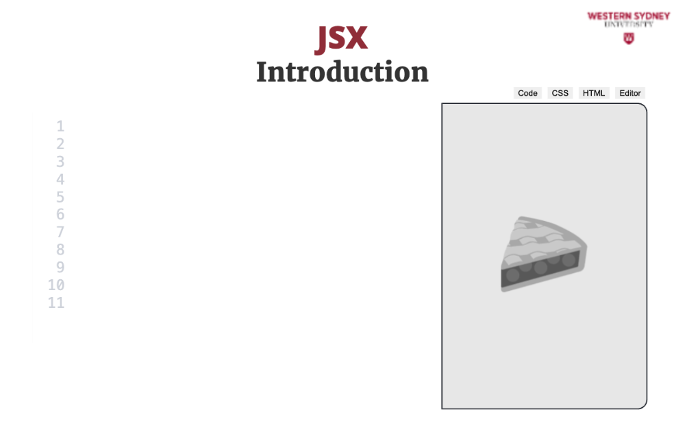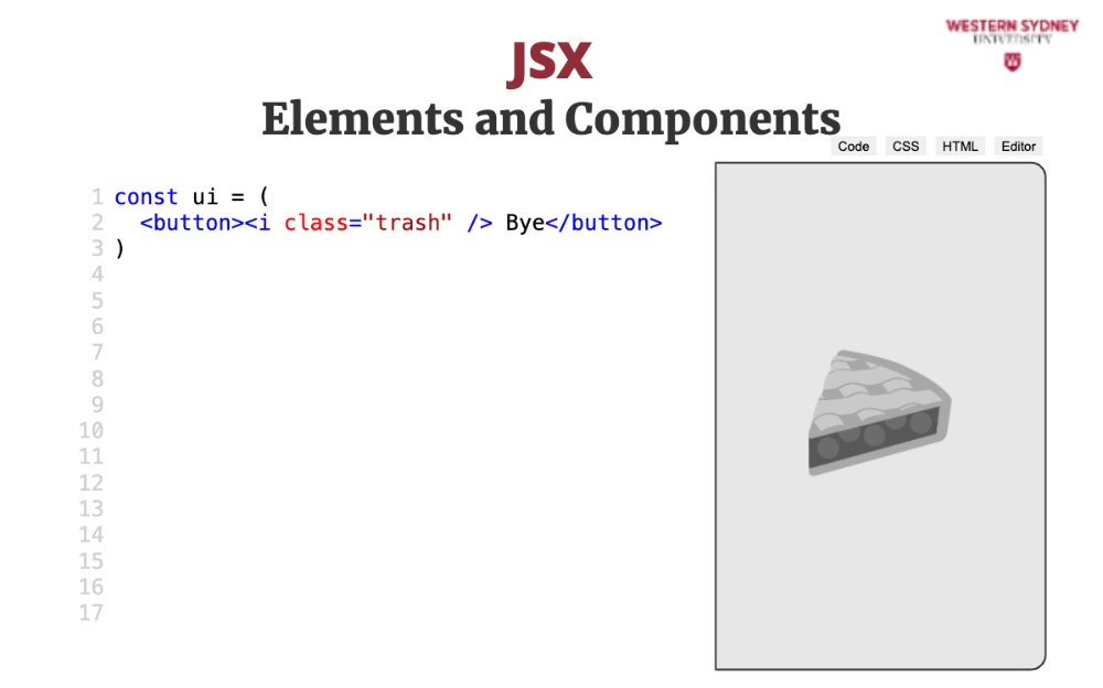Here's an example of what JSX looks like: