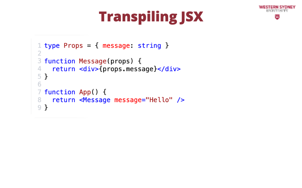Check out the transpiled version of the code above. Observe, that it is just a regular javascript with very simple function calls!. In reality, you do not need to write React apps using JSX, but it is much more comfortable. Don't worry if JSX seems a bit strange at first โ it's a powerful tool that makes writing React components much more intuitive and readable. With practice, you'll get the hang of it and start appreciating its quirky charm!