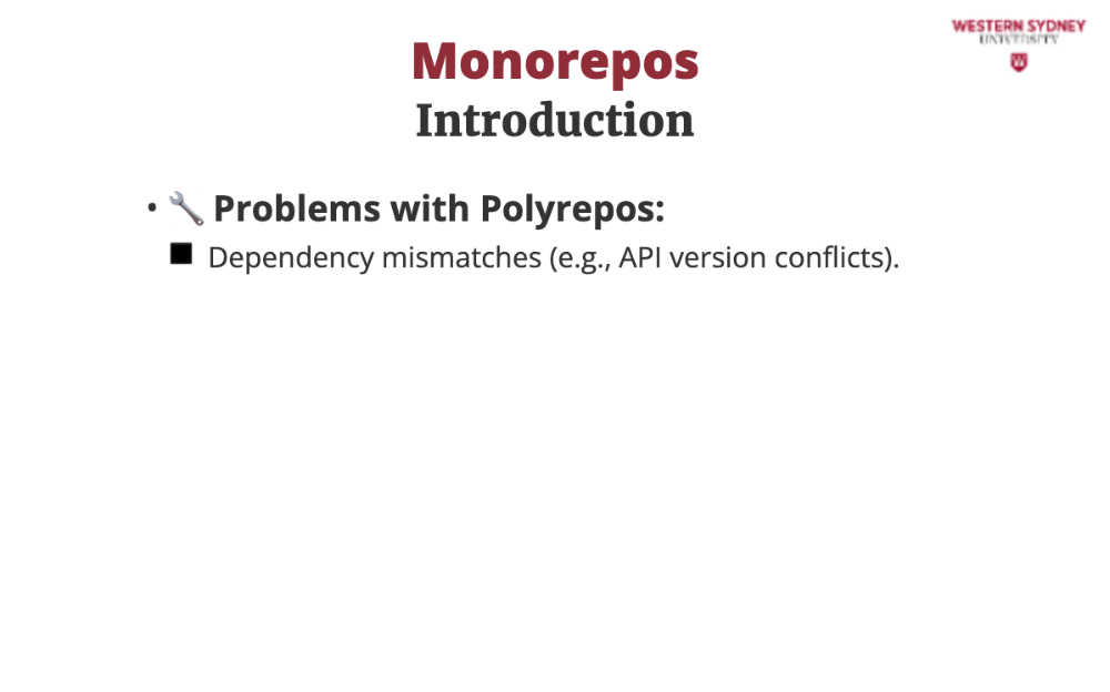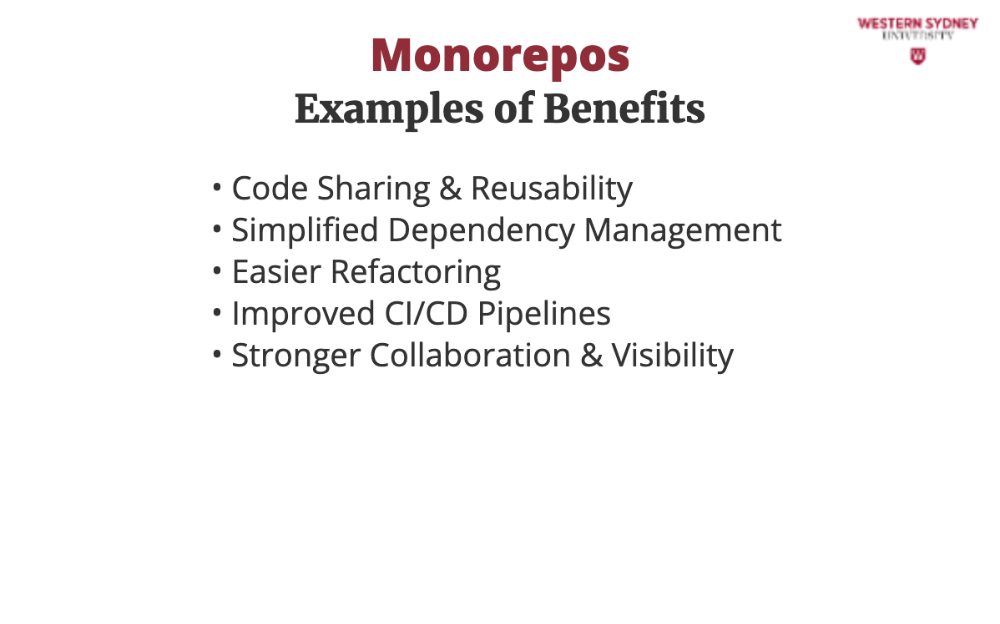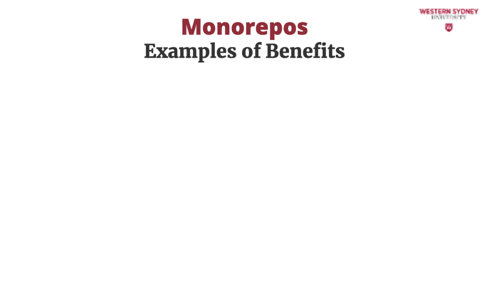 In a polyrepo setup, these would be separate repositories, leading to dependency mismatches. With a monorepo, all projects stay in sync, making collaboration smoother.