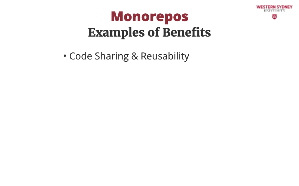 In monorepos, teams can easily reuse code across projects. Shared libraries (e.g., authentication, UI components) stay in sync without extra work. For example a React component library can be shared between the front end and an admin dashboard without publishing it as an npm package.