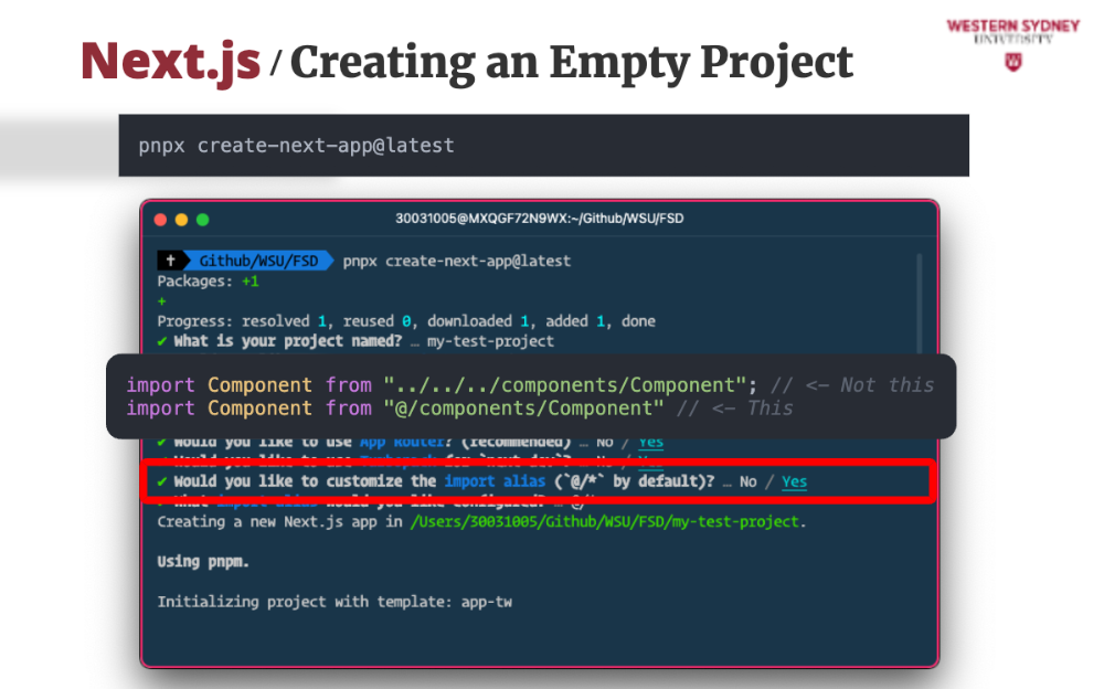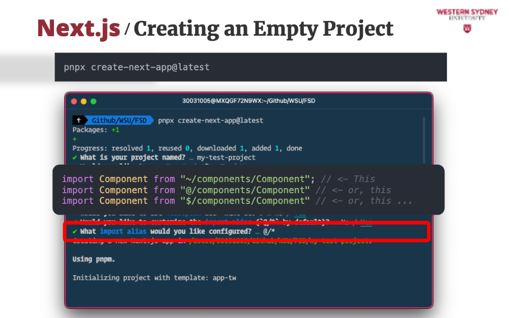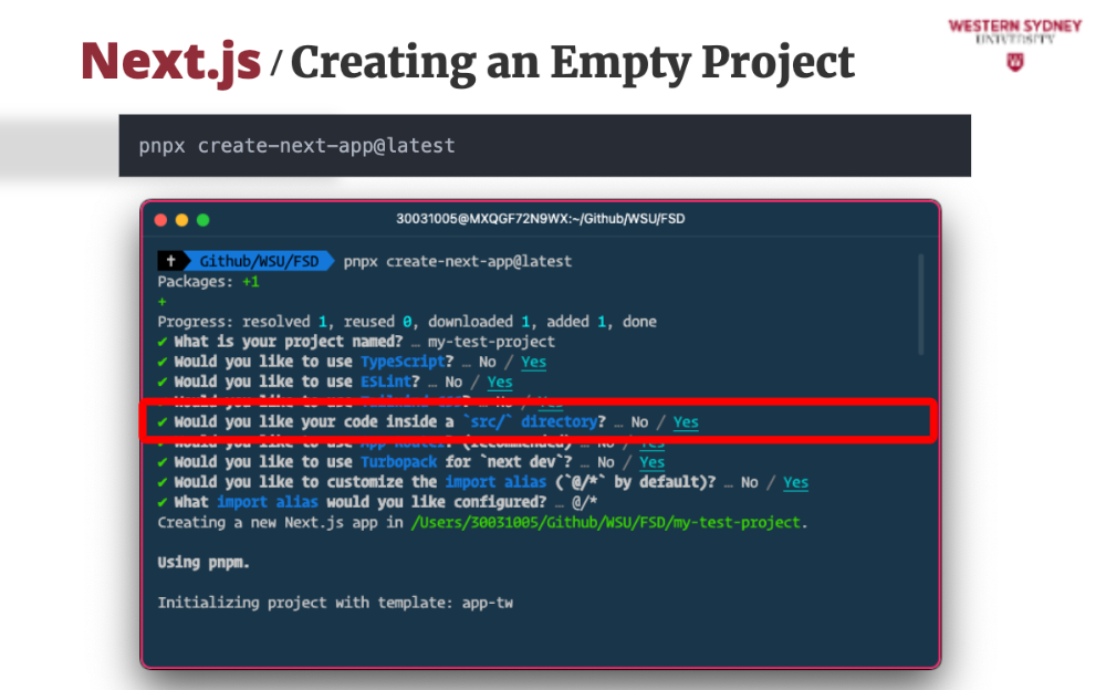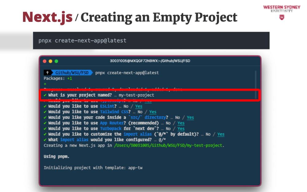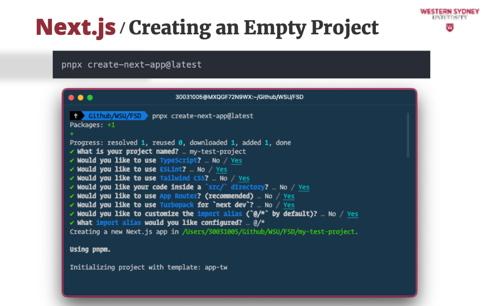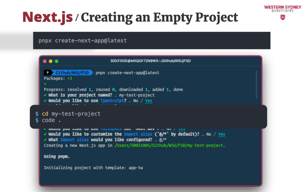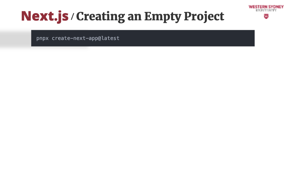 While we have a project to work on, let's see how easy it is to start a new Next.js project from scratch. It's a simple command, and you'll be guided through the setup process.
