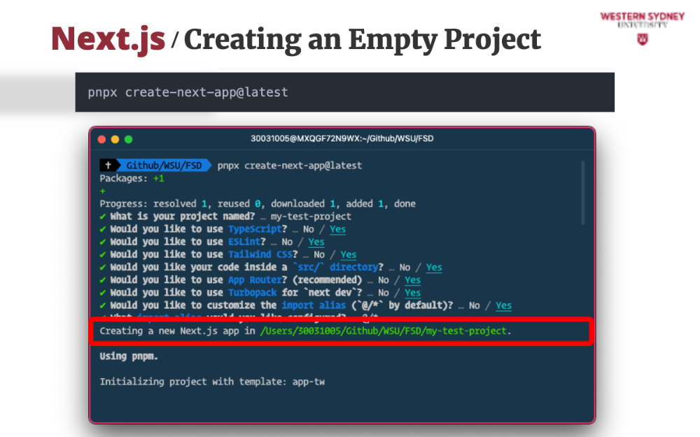 π Effect: Creates a folder with this name and sets up a Next.js project inside it.
