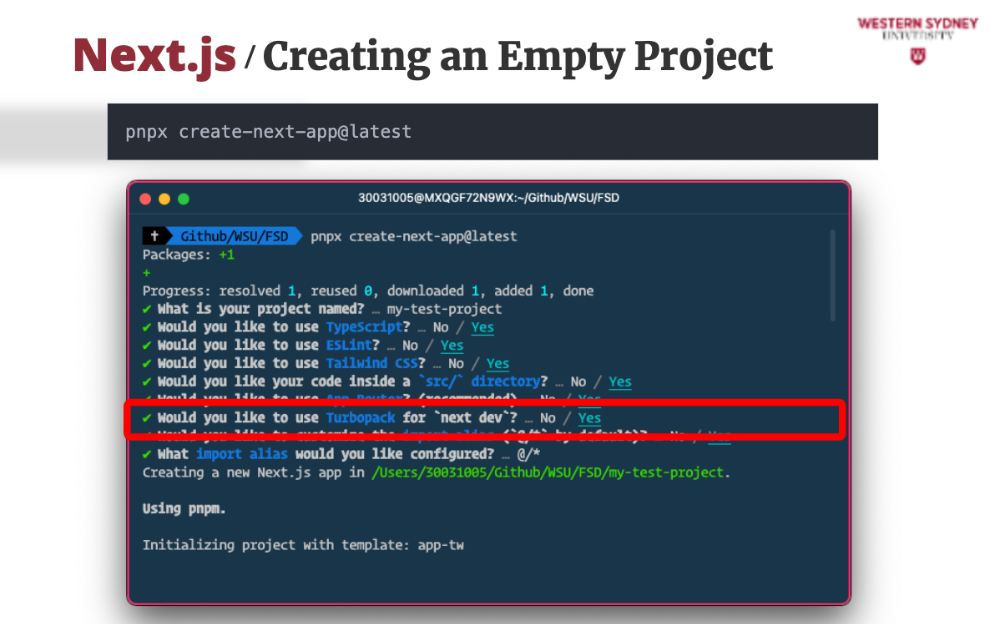 7. Would you like to use Turbopack for next dev? (No / Yes)