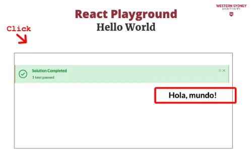 Your goal is to change the Hello World text to its Spanish equivalent: Hola Mundo! We added unit tests to check your solution, and if you did everything right, your tests will turn green! Make sure to get the correct spelling and punctuation to avoid frustration.
