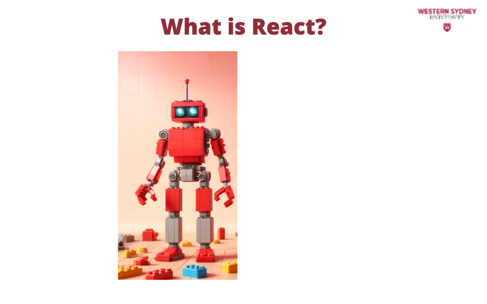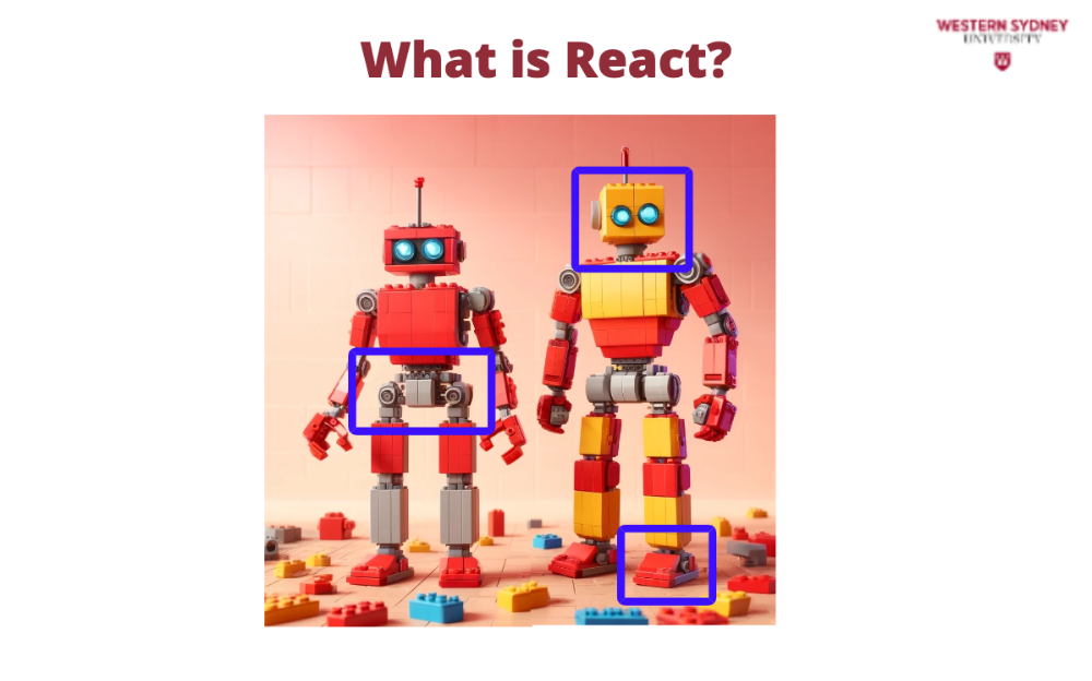 But that's not all! React is also very efficient. For example, when you swap out a hat on your LEGO robot, you do not have to rebuild the entire thing, ReactJS works in a similar way with websites.