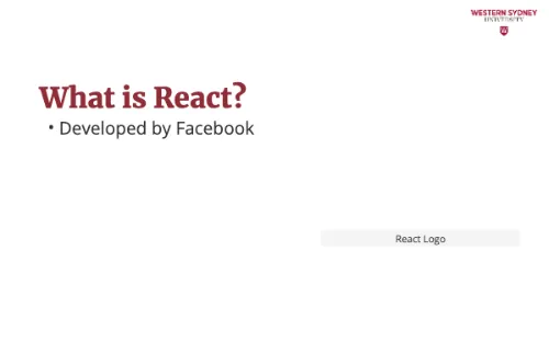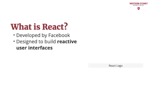 React is a JavaScript library created by Facebook, with contributions from worldwide community.