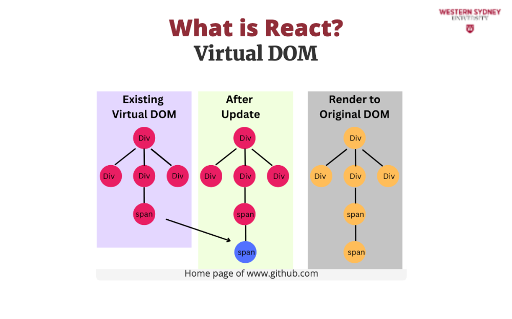 Whenever a change needs to happen, like someone clicking a button or typing something, ReactJS updates only the specific parts that need changing—not the entire website. Pretty clever, right?