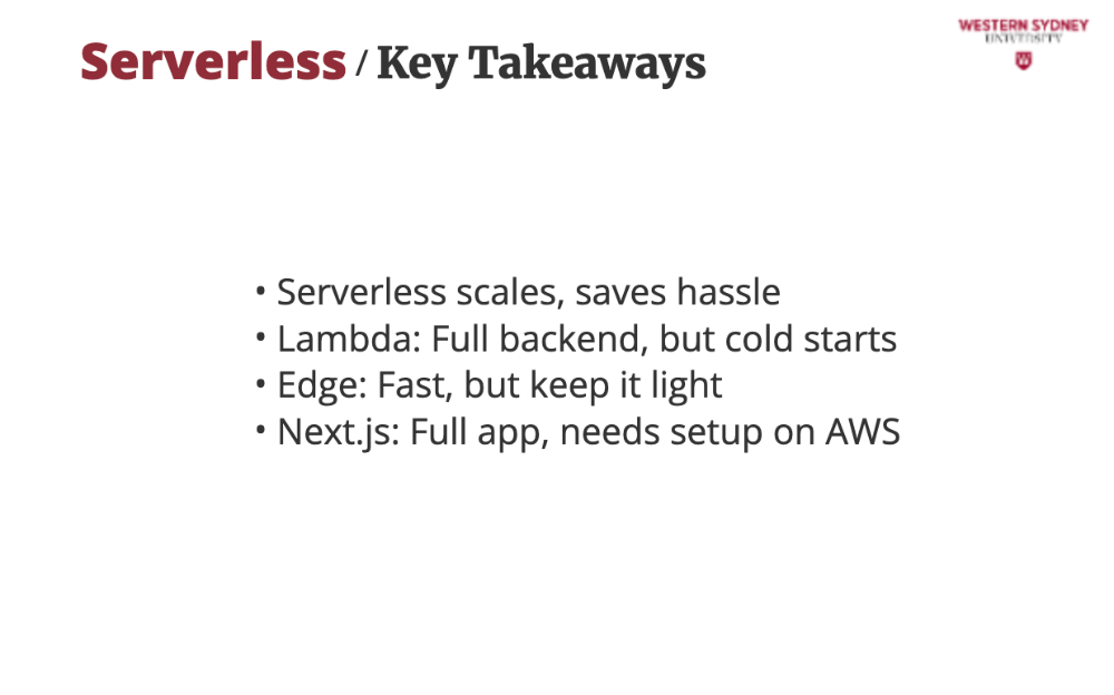 Serverless lets you deploy without managing servers. Providers like AWS or Vercel handle scaling, so your app stays fast and reliable, even under heavy traffic. More users? No problem, they spin up another server for you!