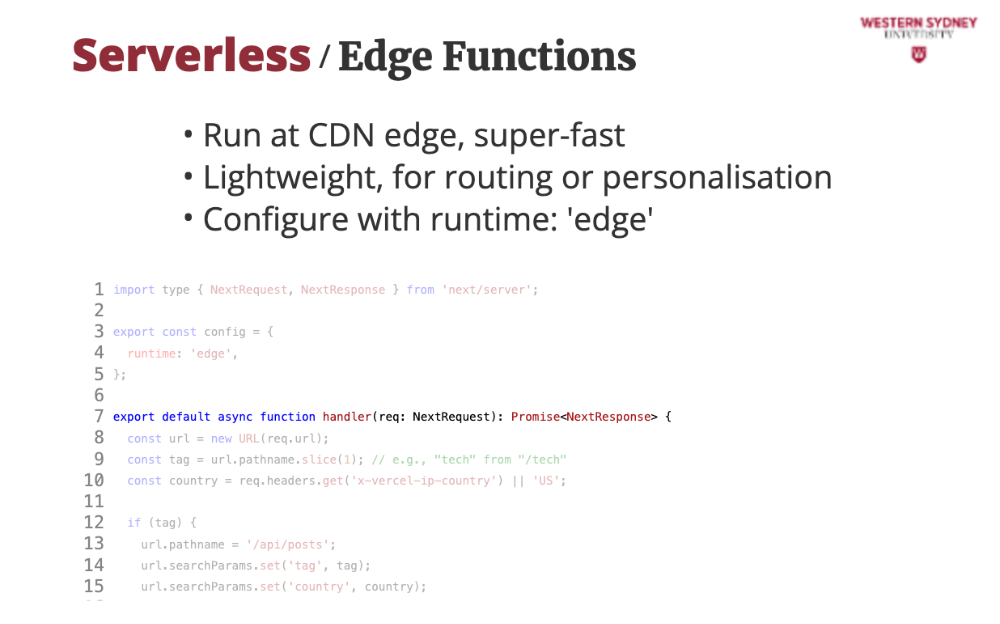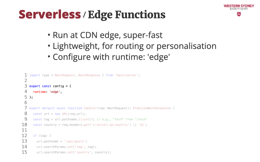 The runtime: 'edge' setting ensures the function runs on Vercel’s CDN, reducing latency to <50ms for users worldwide. Without this, it might run as a serverless function in a single region (e.g., us-east-1), adding 100-200ms for distant users.