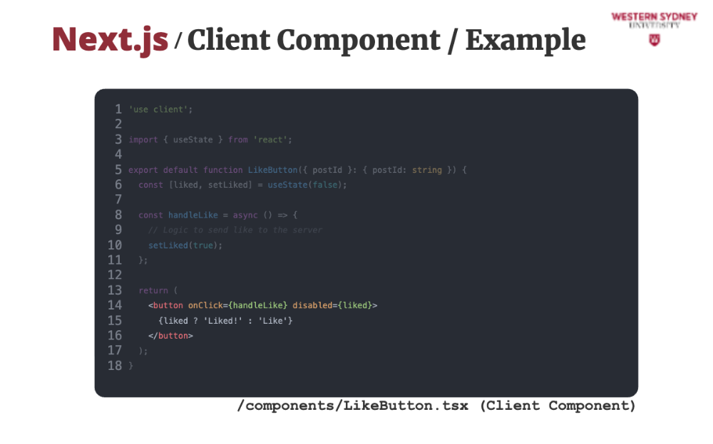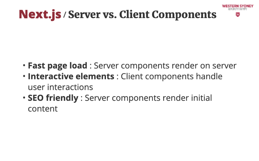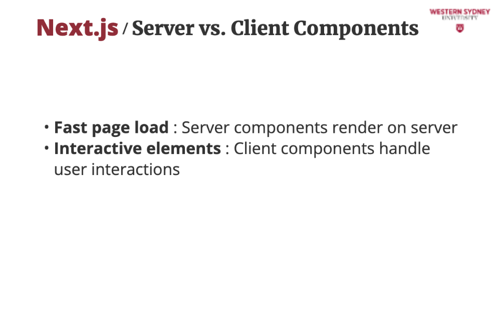 When to use: Use Client Components for interactive elements, state management, and UI updates.