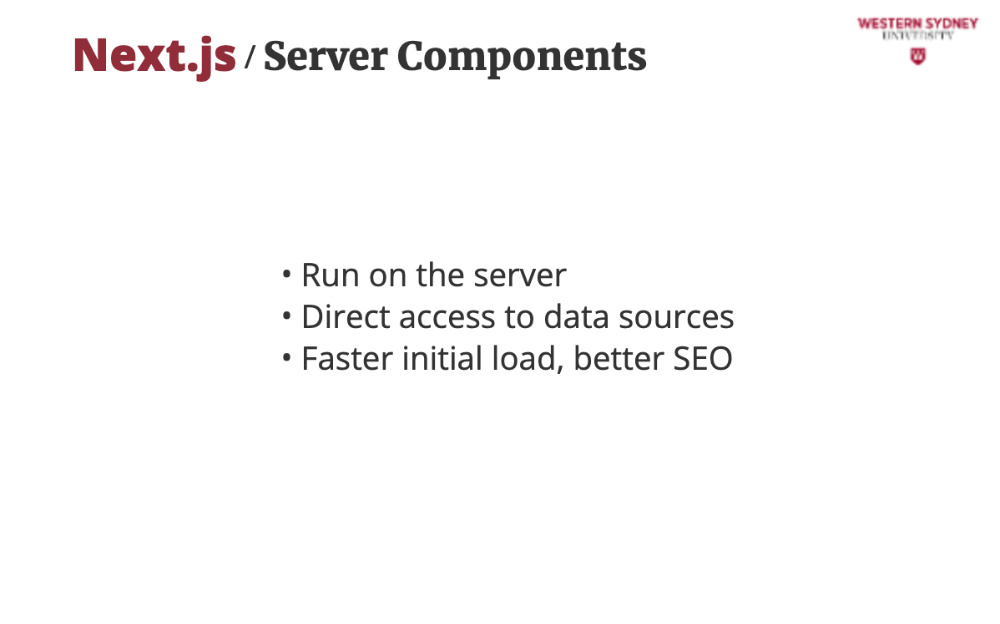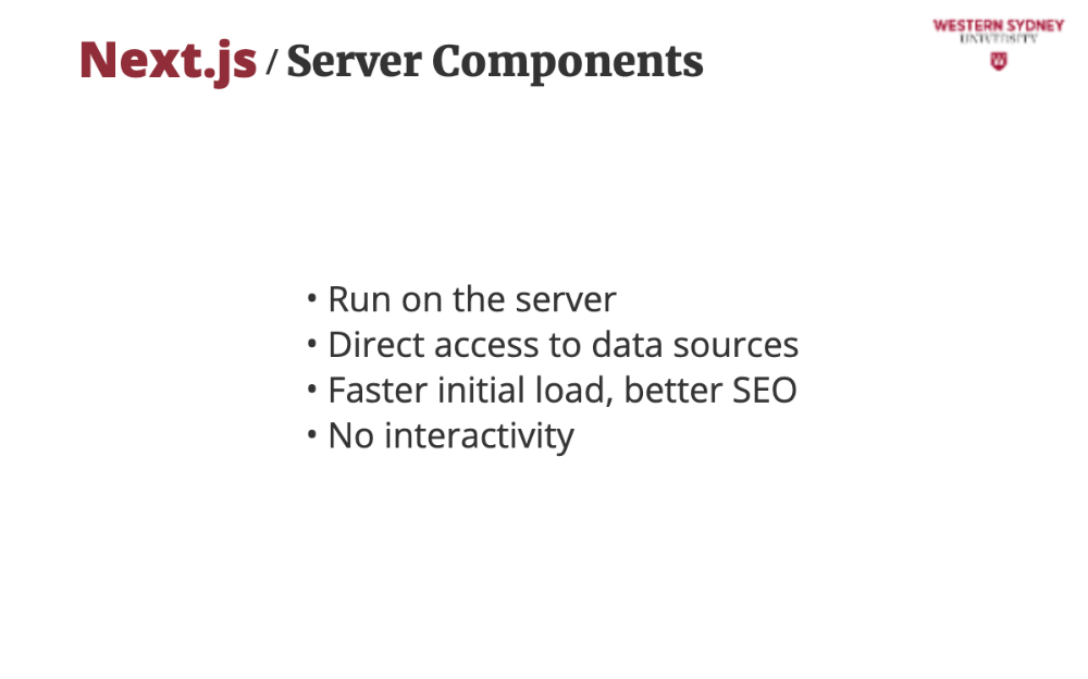 When not to use: Avoid Server Components for interactive elements like buttons, form inputs, or anything that requires immediate user feedback.