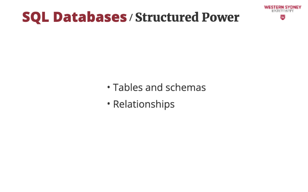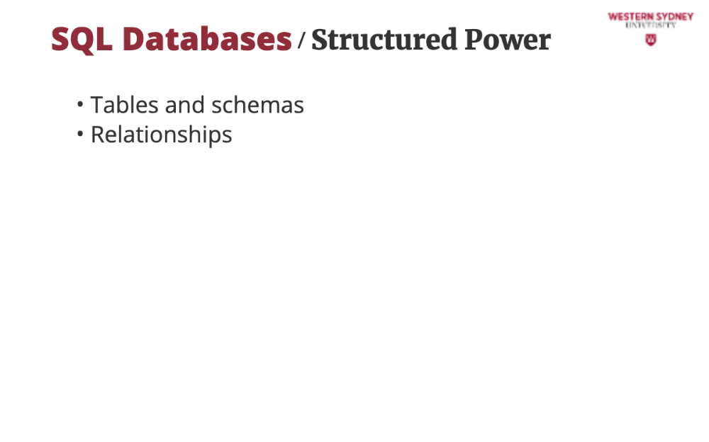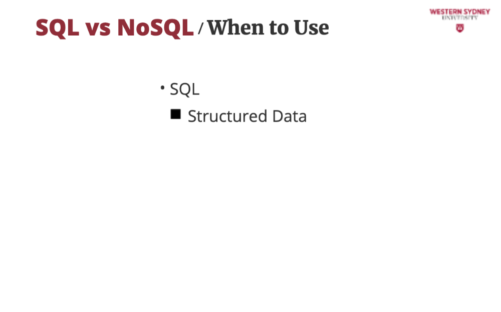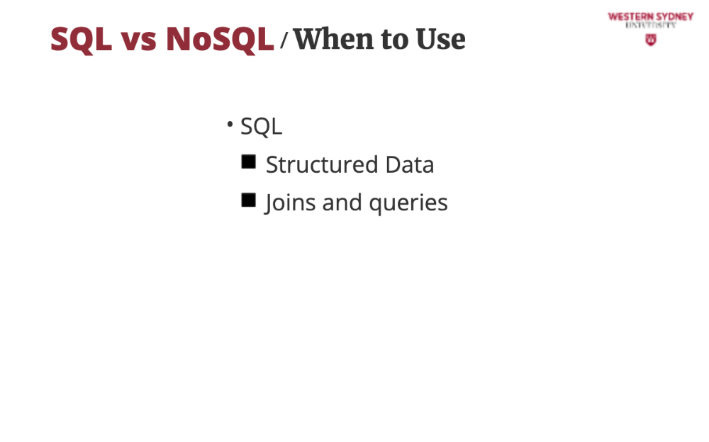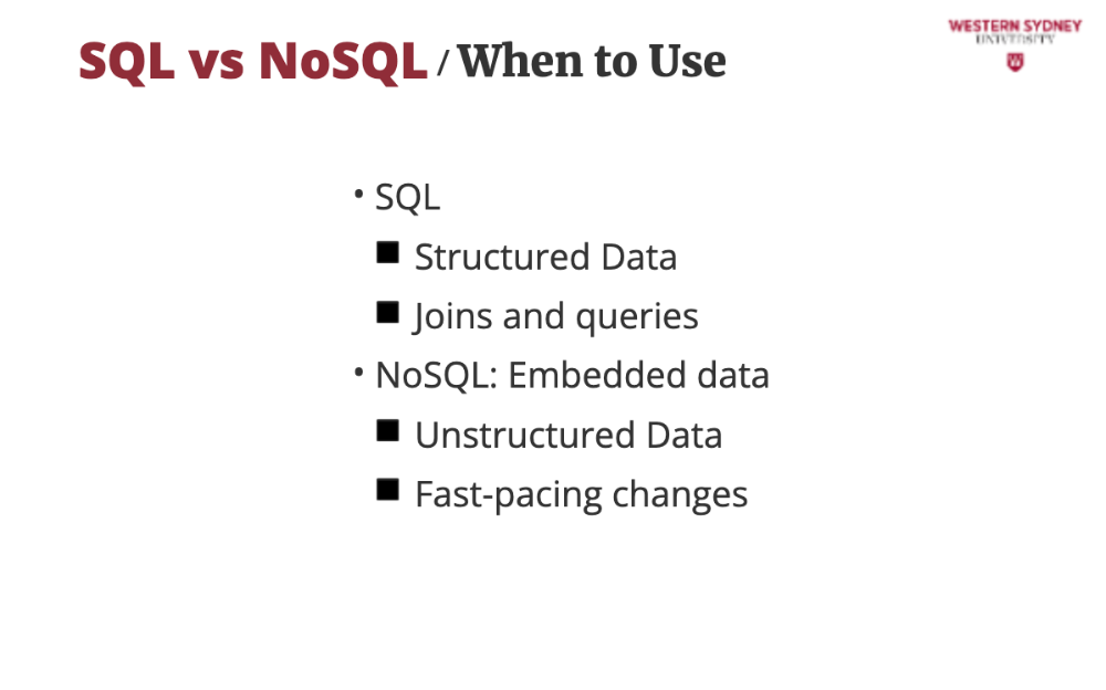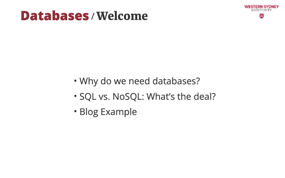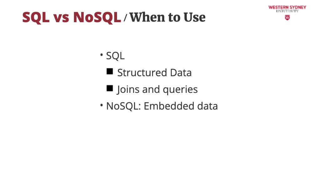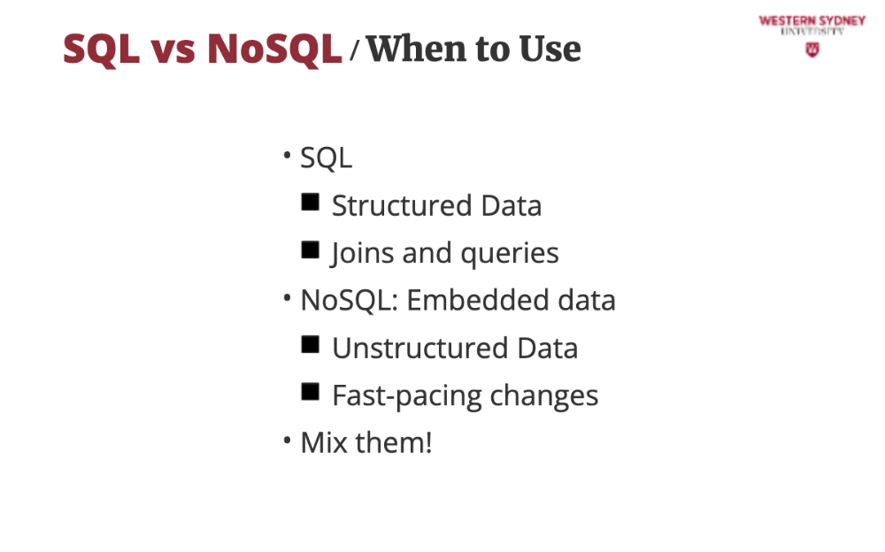 In this course we do not cover details of SQL or NoSQL databases, rather discuss which you should use for your project.