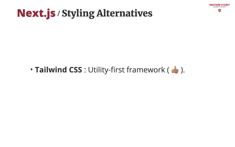 We've talked about Tailwind, but to reiterate, it's a utility-first CSS framework. Instead of writing custom CSS, you apply pre-defined utility classes directly in your HTML. Think classes like text-3xl font-bold for large, bold text. It's quick for development but can sometimes lead to long class names.