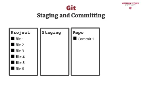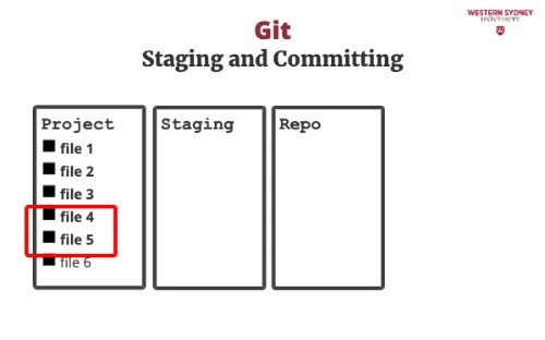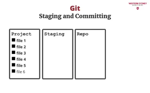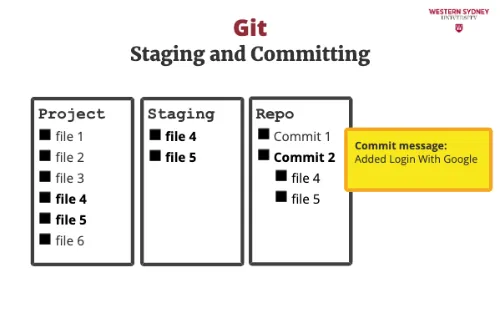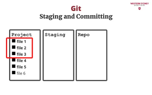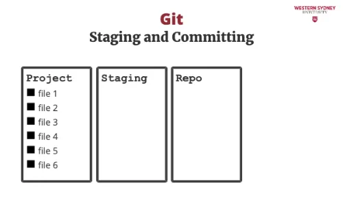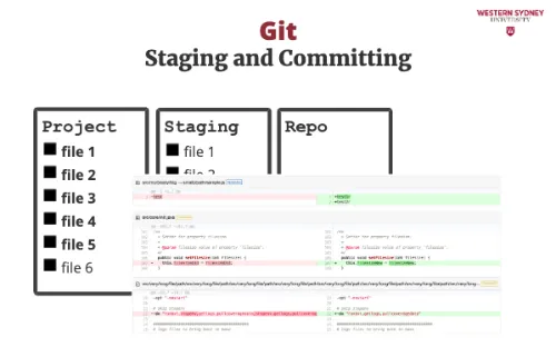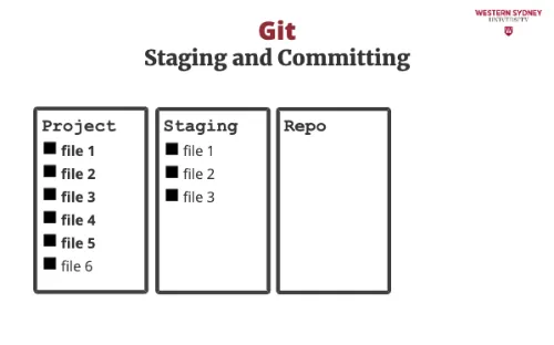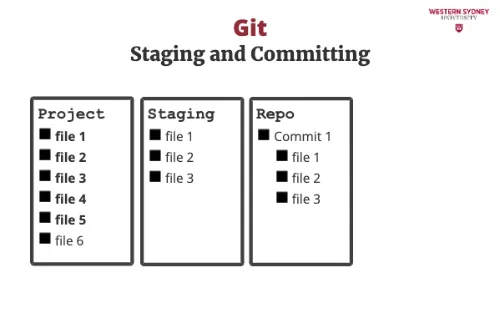 In Git, the term "staging" relates to grouping your changed files based on the functionality you are working on. For example, changing the look of the button, or changing the calculation of the tax formula.