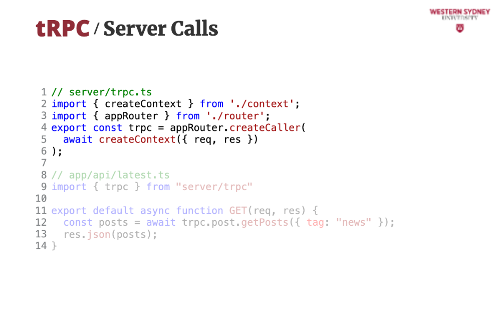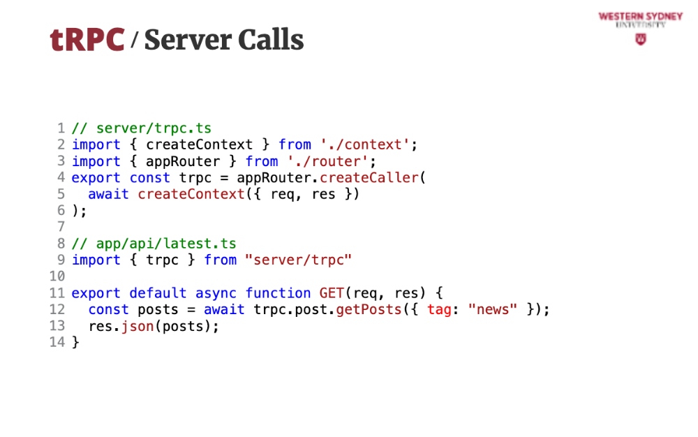 What if we need tRPC in a server route (e.g., API route in Next.js)? Say we want to fetch posts from /api/latest: