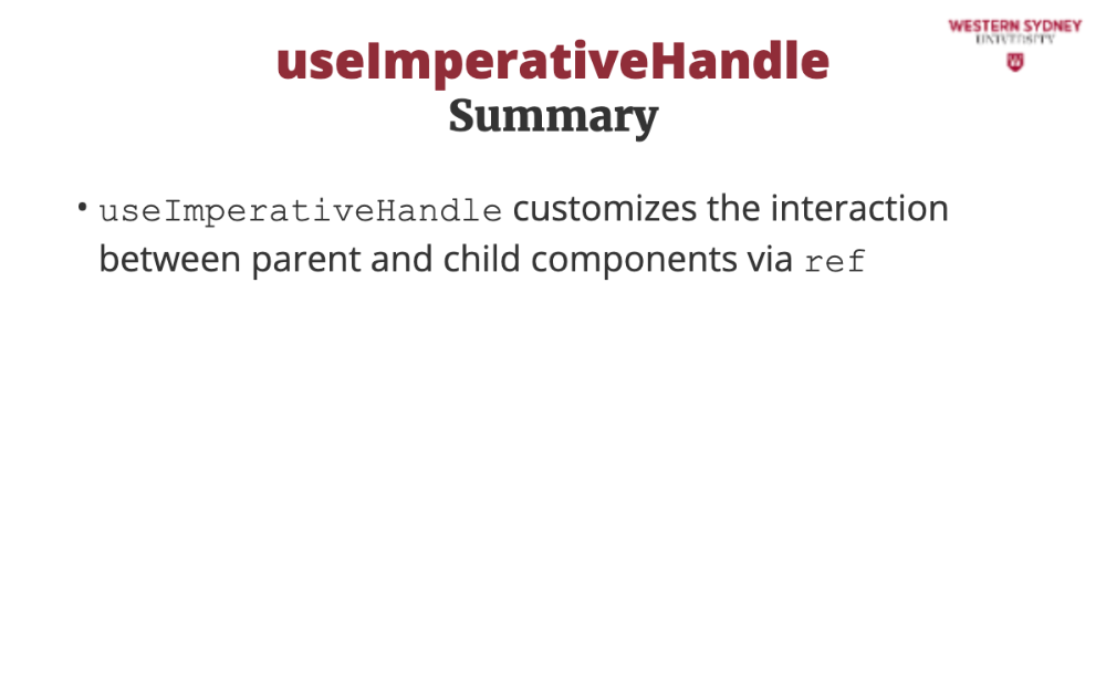 Let's summarise! Using this hook, you define exactly what a parent component can access in its child.