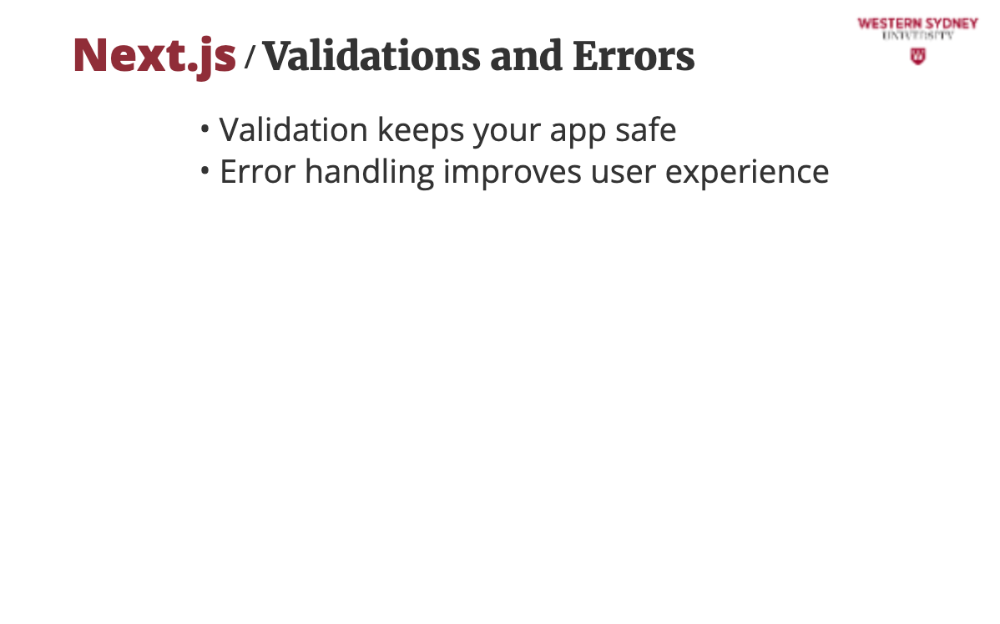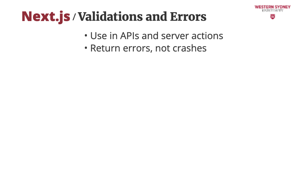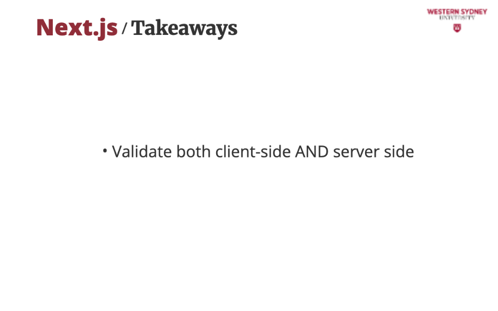 Next.js lets us validate in API routes or server actions. Both run on the server, so we can trust the checks even if the client messes up.