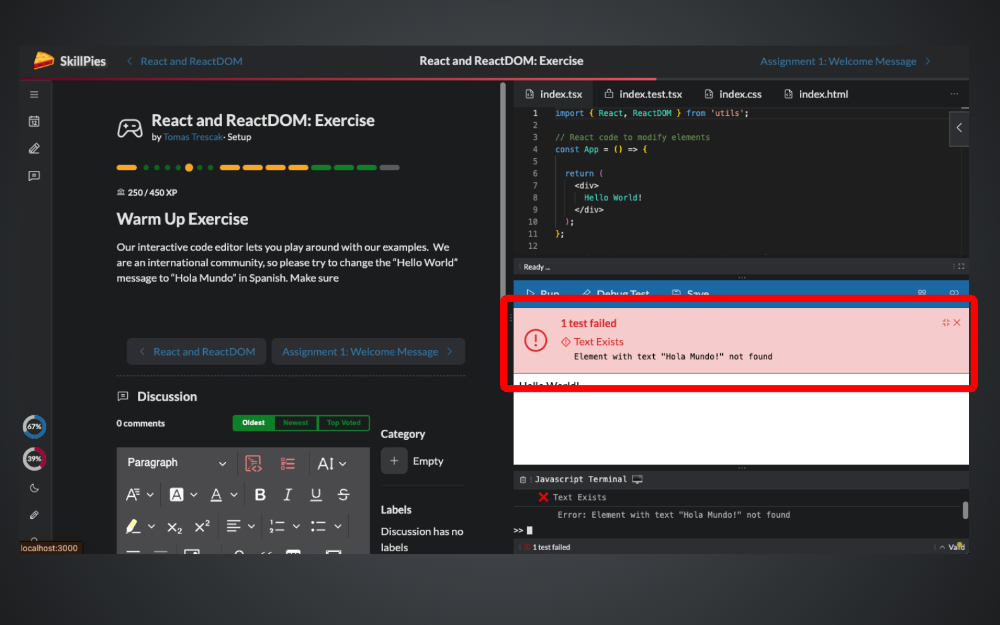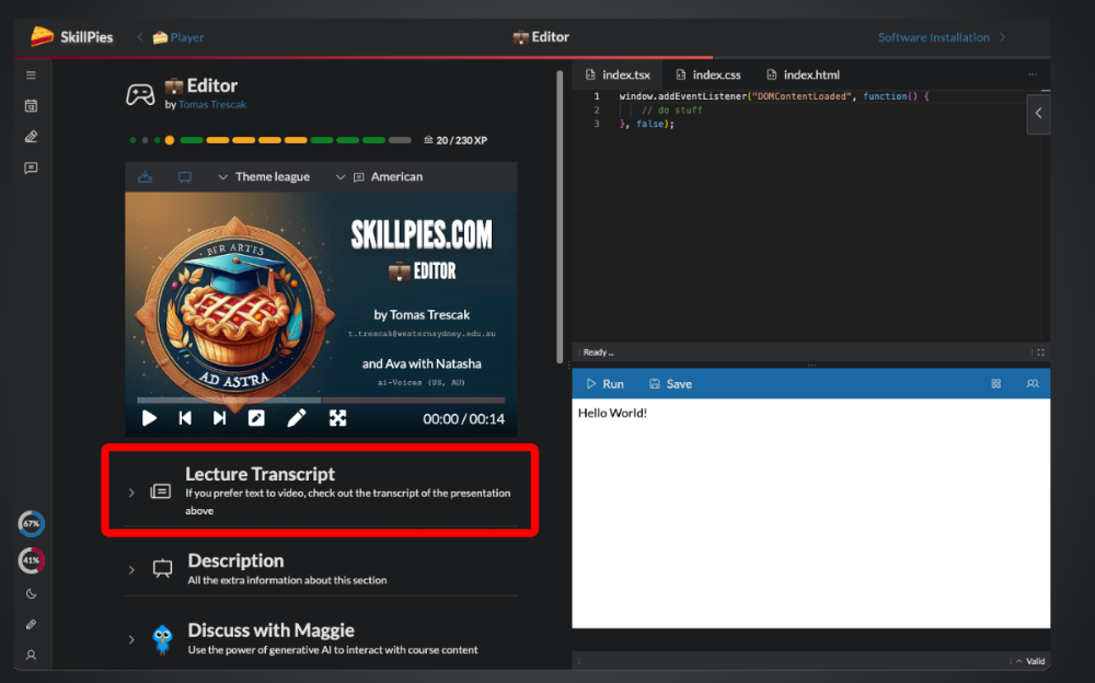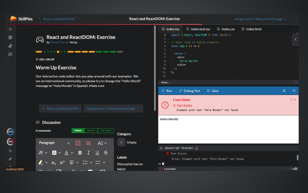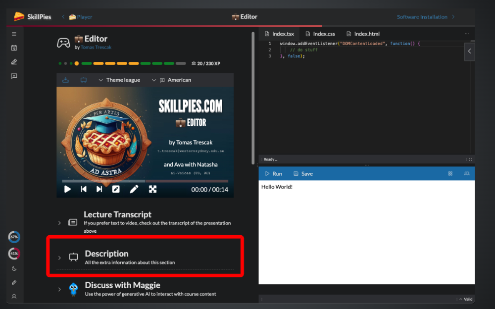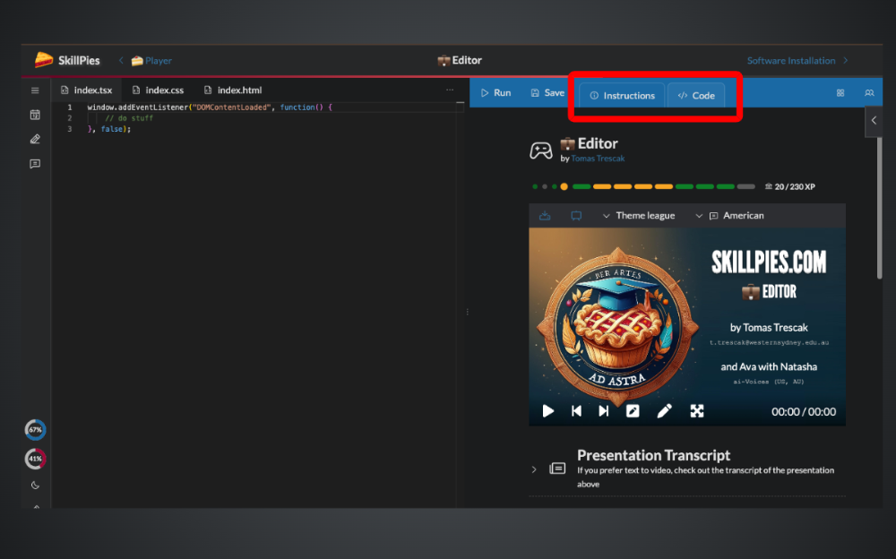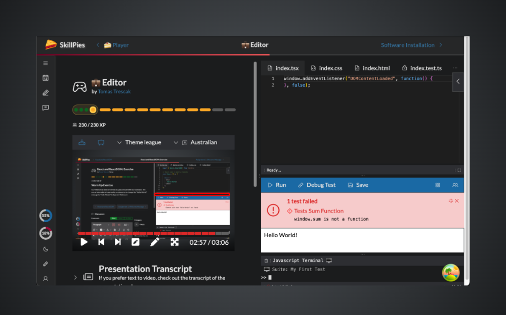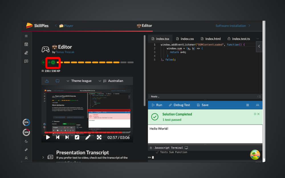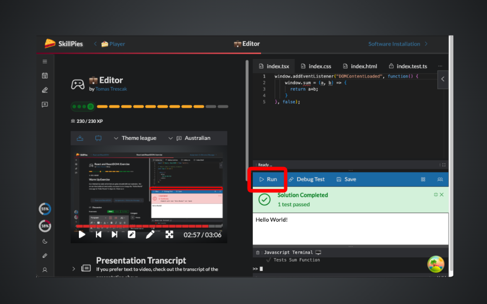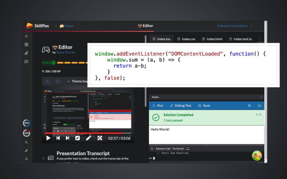 One of the most remarkable features of SkillPies.com is the interactive code editor. In this section, we discover all its possibilities! Please check out the presentation above and follow the simple instructions!