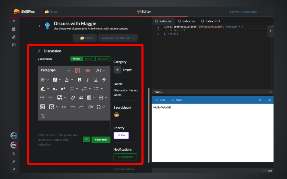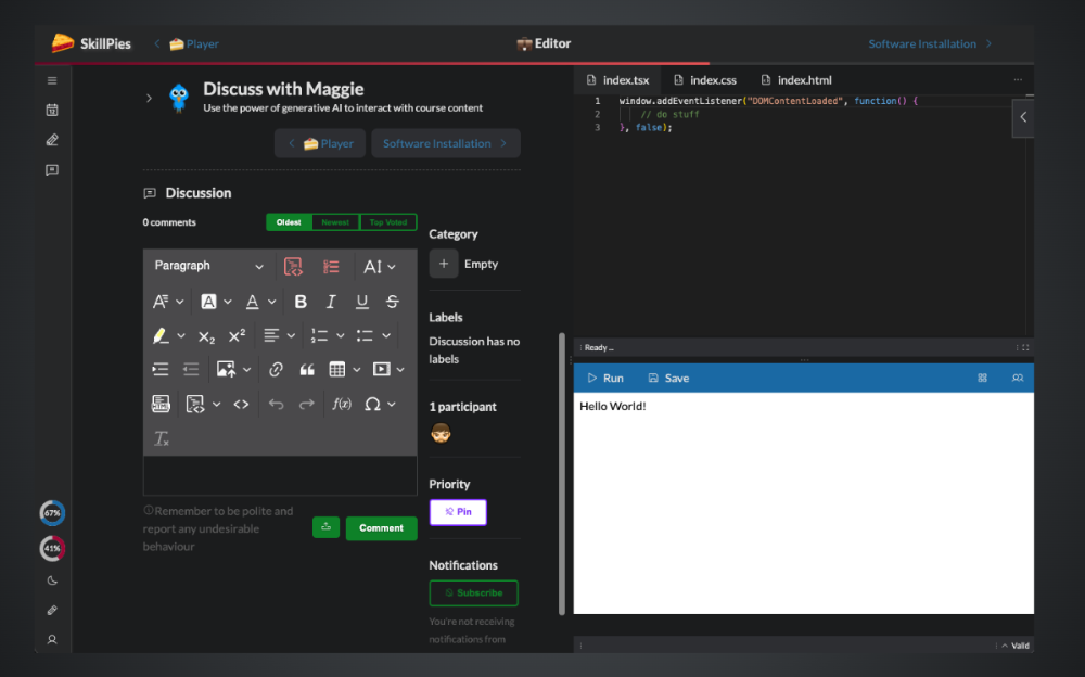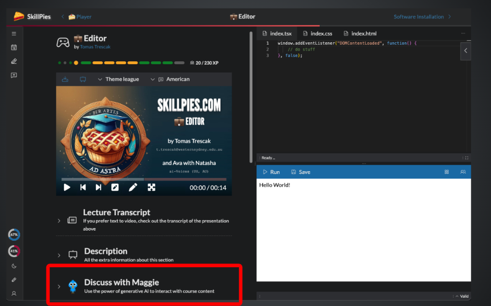 Some sections allow you to consult our handy assistant, Maggie! Maggie is using the power of Generative AI to provide helpful answers to any questions you might have about the content. Try it out!