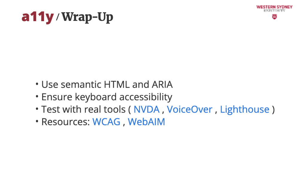 Last, your code must support screen readers and future tools, ensuring long-term compatibility.